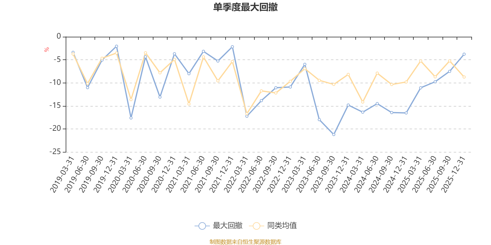 截至1月22日,基金近三年最大回撤為44.78%,同類可比基金排名1079/1264。單季度最大回撤出現(xiàn)在2023年三季度,為21.2%。