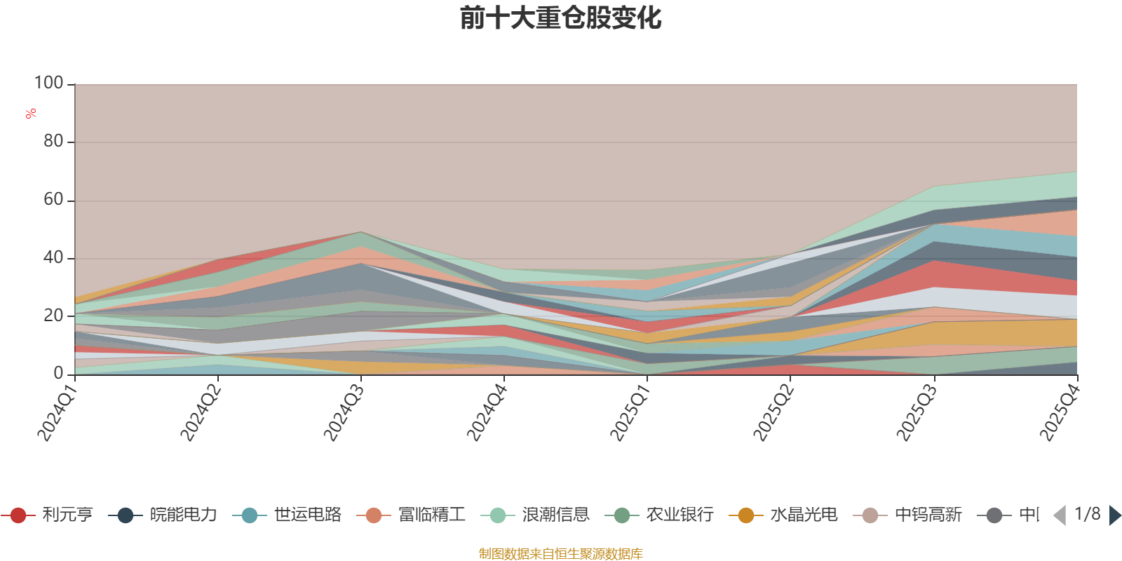 截至2025年四季度末,基金十大重倉股分別是交通銀行、招商銀行、長江電力、工商銀行、中國銀行、建設銀行、農(nóng)業(yè)銀行、杭州銀行、郵儲銀行、皖能電力。