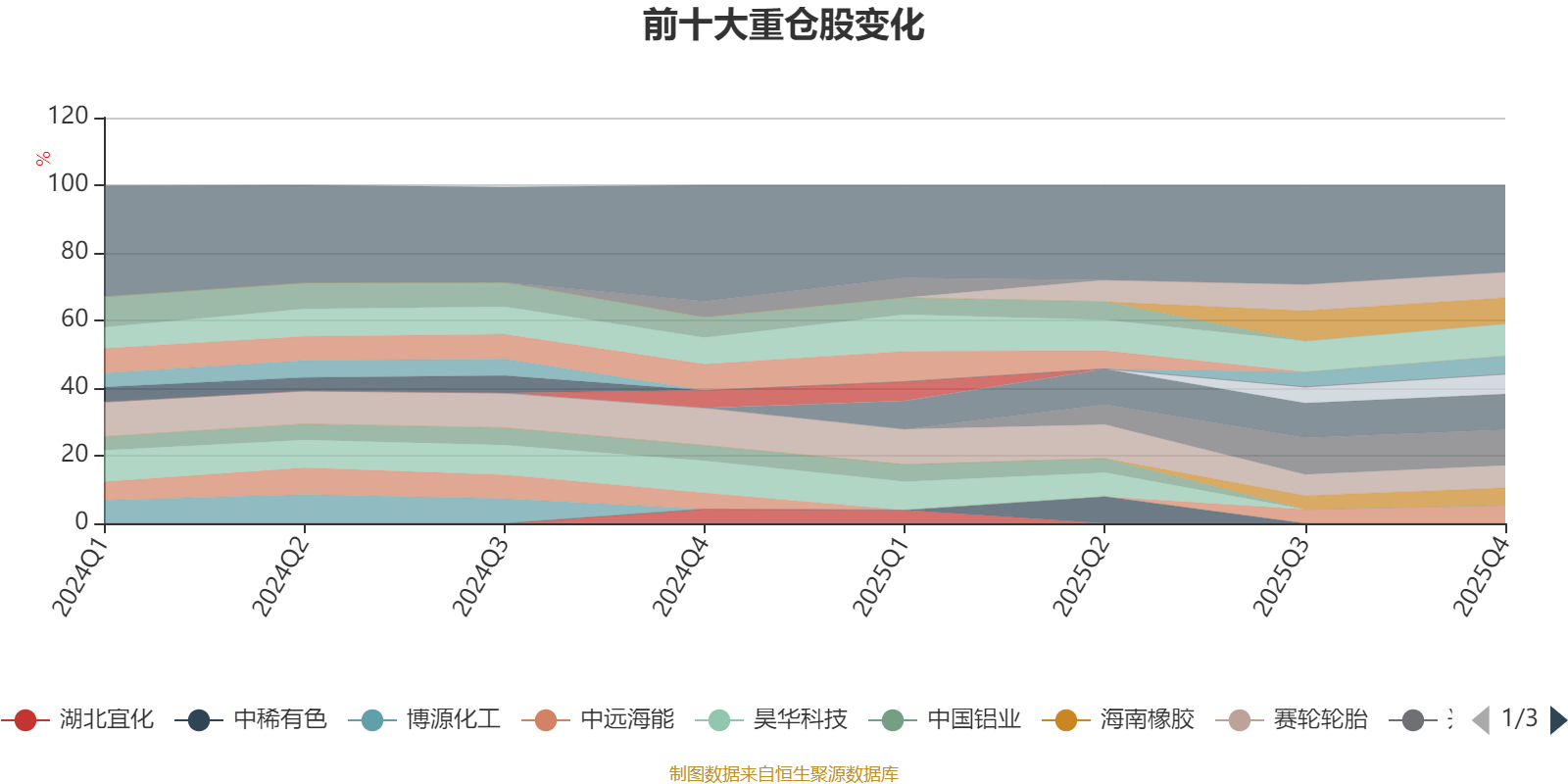 該基金持股集中度較高,近2年前十大重倉股集中度長期超過60%。截至2025年四季度末,基金十大重倉股分別是興業(yè)銀錫、山東黃金、招金礦業(yè)、錫業(yè)股份、HTSC(06886)、賽輪輪胎、中曼石油、中金黃金、中遠(yuǎn)海能、海南橡膠。