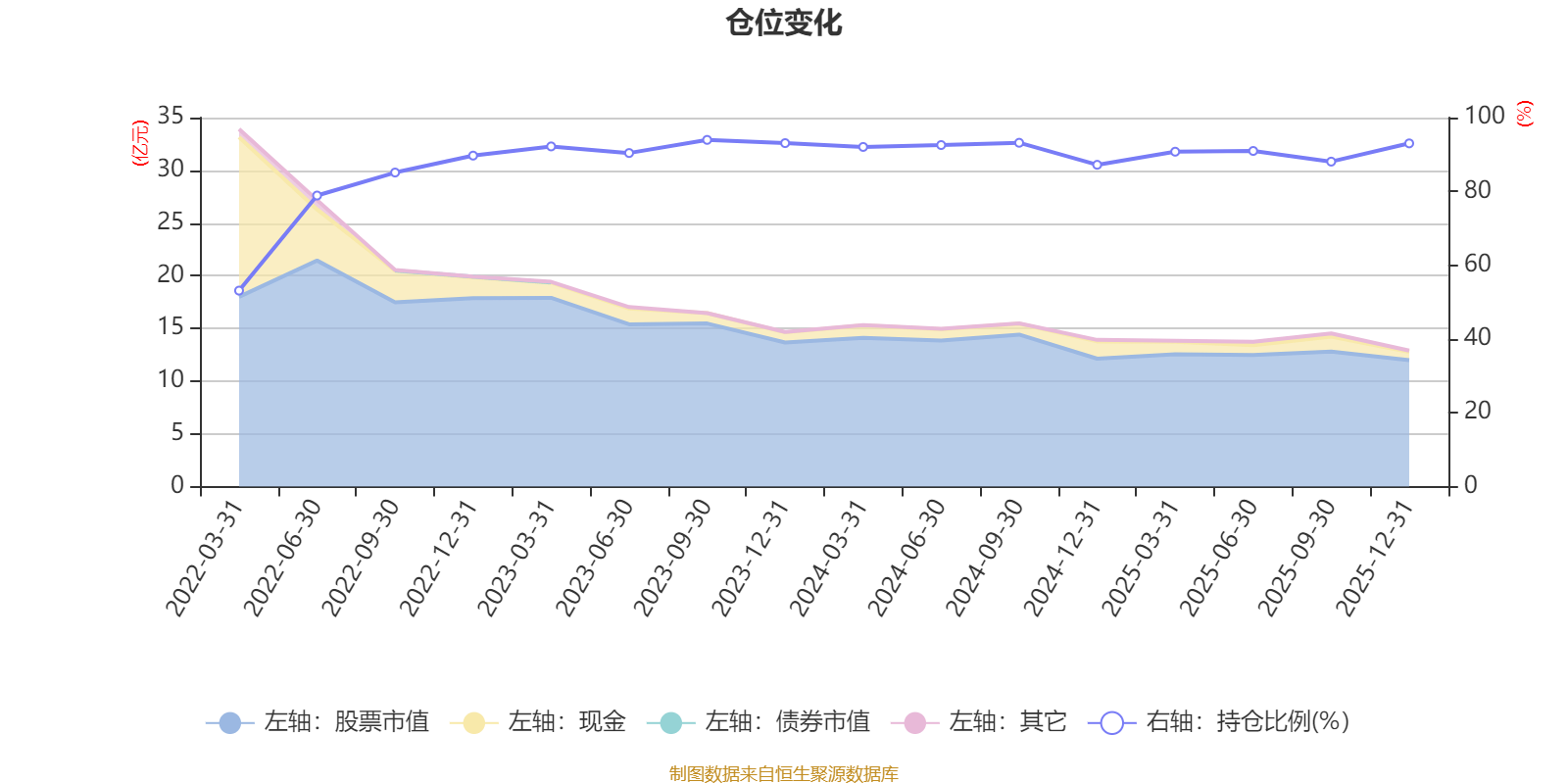 據(jù)定期報(bào)告數(shù)據(jù)統(tǒng)計(jì),近三年平均股票倉位為91.45%,同類平均為86.41%。2023年三季度末基金達(dá)到93.96%的最高倉位,2022年一季度末最低,為53.11%。