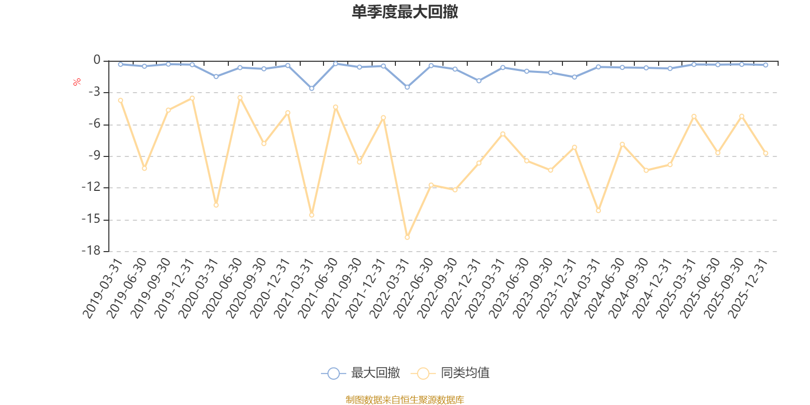 截至1月22日,基金近三年最大回撤為2.19%,同類可比基金排名31/1264。單季度最大回撤出現(xiàn)在2021年一季度,為2.61%。