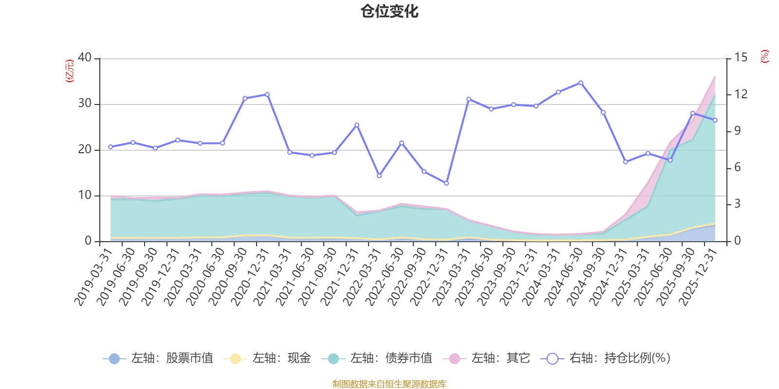 基金管理人在四季報中表示,本季度,市場的資產(chǎn)配置仍在延續(xù)上個季度的方向,但政策和監(jiān)管的影響使得股債市場在本期波動都不大。2026 年的財政政策為“保持必要規(guī)?!保@符合我國近些年政策制定的整體思路,即長短兼顧,也即政策重心回歸到長期問題上。市場也基于淡化宏觀增長預(yù)期作出了相應(yīng)的投資選擇。 組合在絕對價值股、資源品和低位中小市值個股之間動態(tài)調(diào)整;債券久期中性。