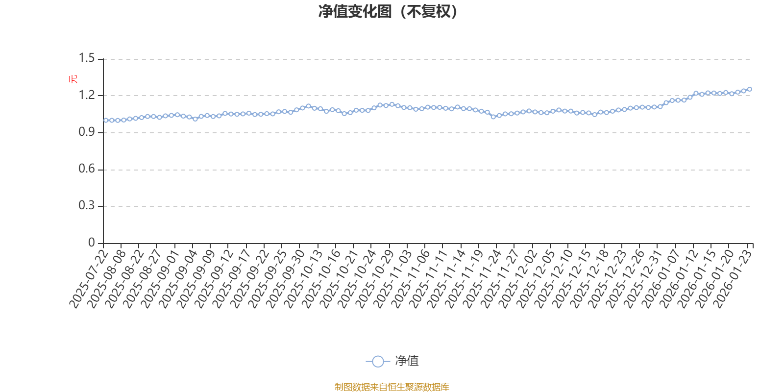 截至1月23日,單位凈值為1.253元。基金經(jīng)理是胡迪和韓秀一,目前共同管理3只基金。