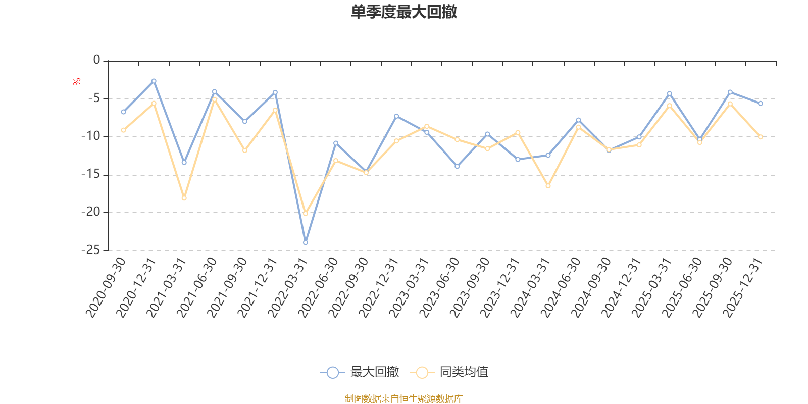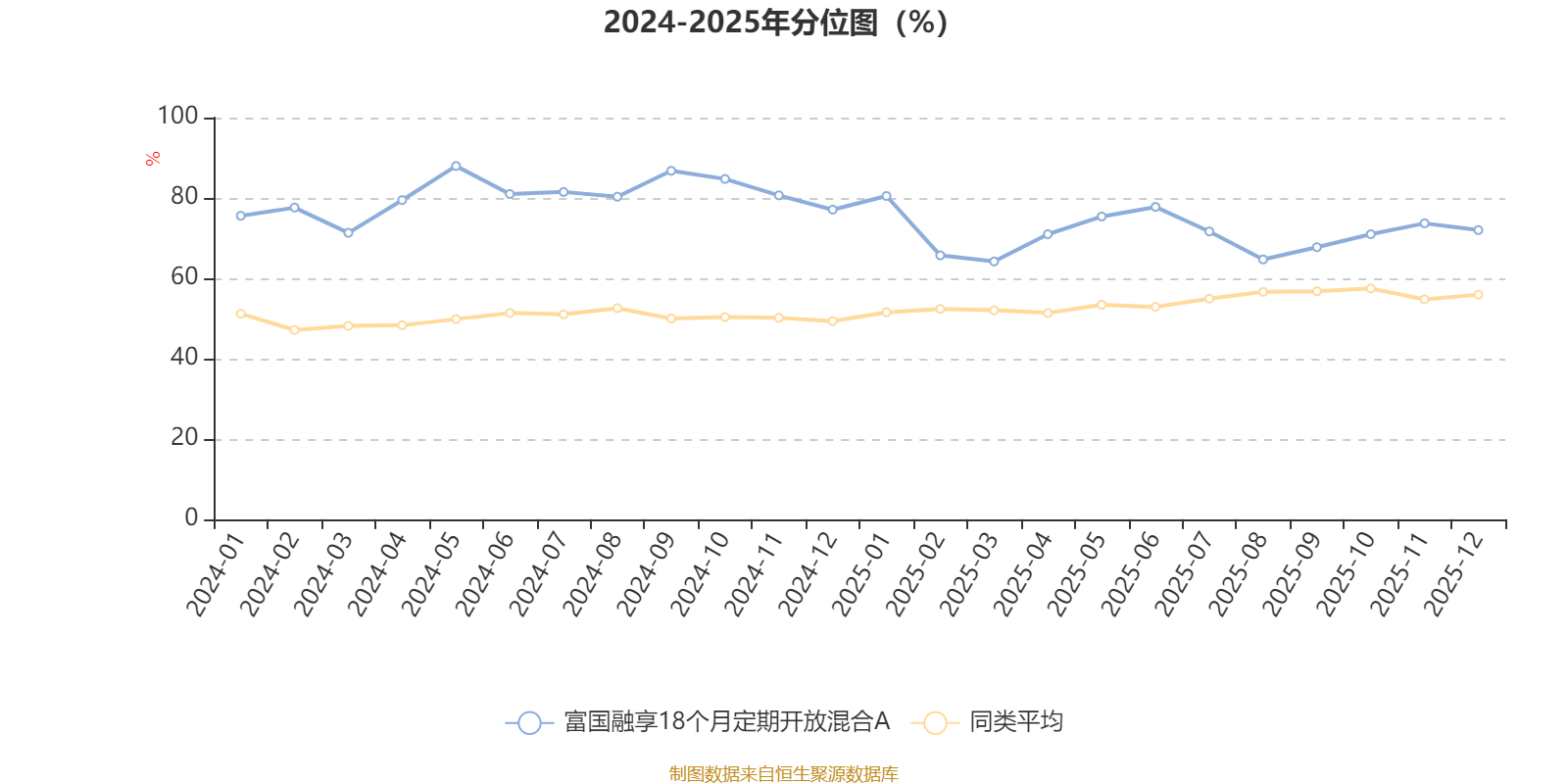 通過所選區(qū)間該基金凈值增長率分位圖,可以觀察該基金與同類基金業(yè)績比較情況。圖為坐標(biāo)原點(diǎn)到區(qū)間內(nèi)某時(shí)點(diǎn)的凈值增長率在同類基金中的分位數(shù)。