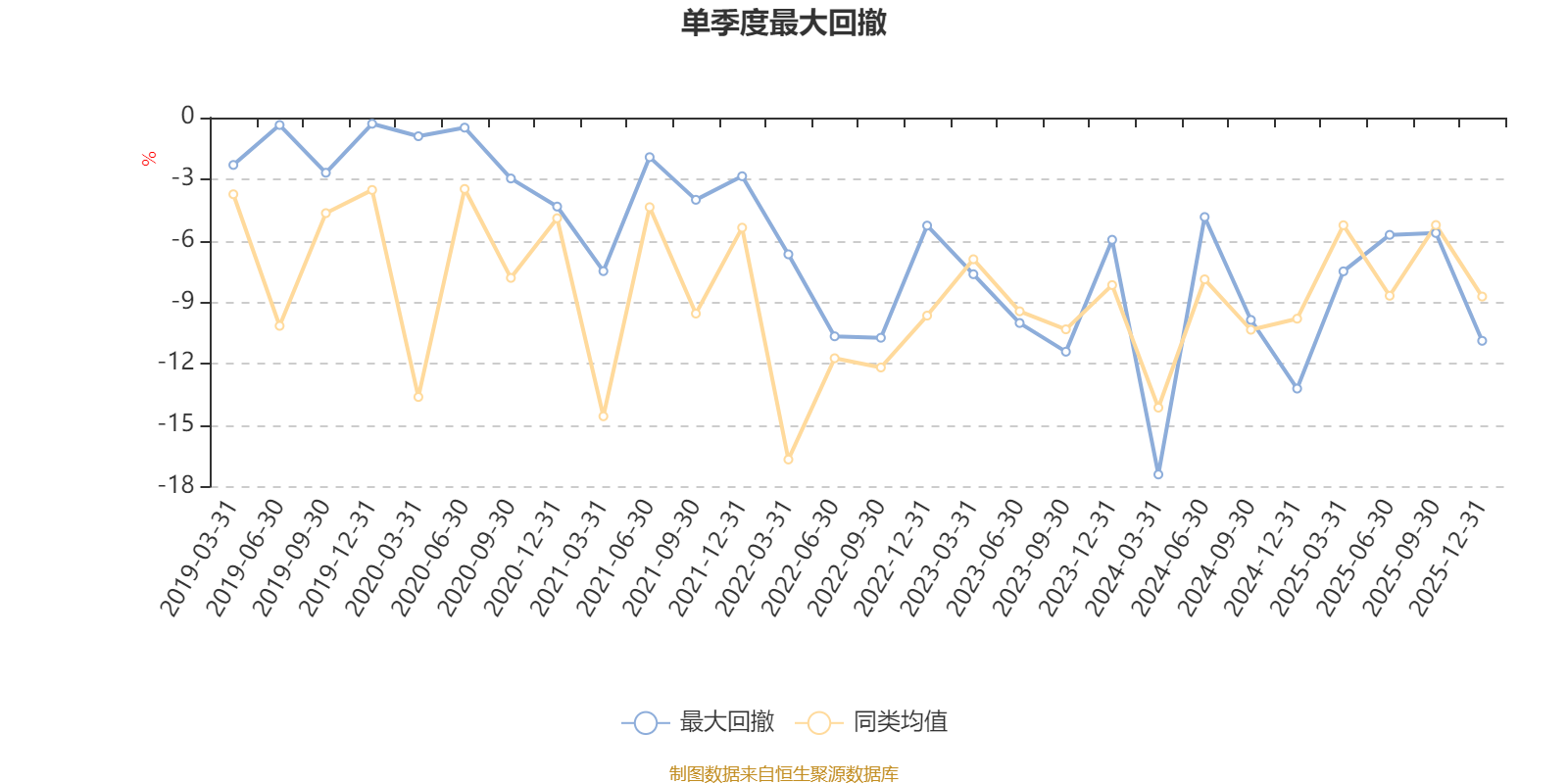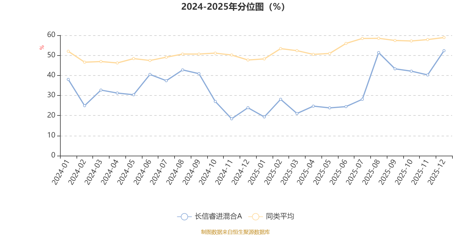 通過所選區(qū)間該基金凈值增長率分位圖,可以觀察該基金與同類基金業(yè)績比較情況。圖為坐標原點到區(qū)間內(nèi)某時點的凈值增長率在同類基金中的分位數(shù)。