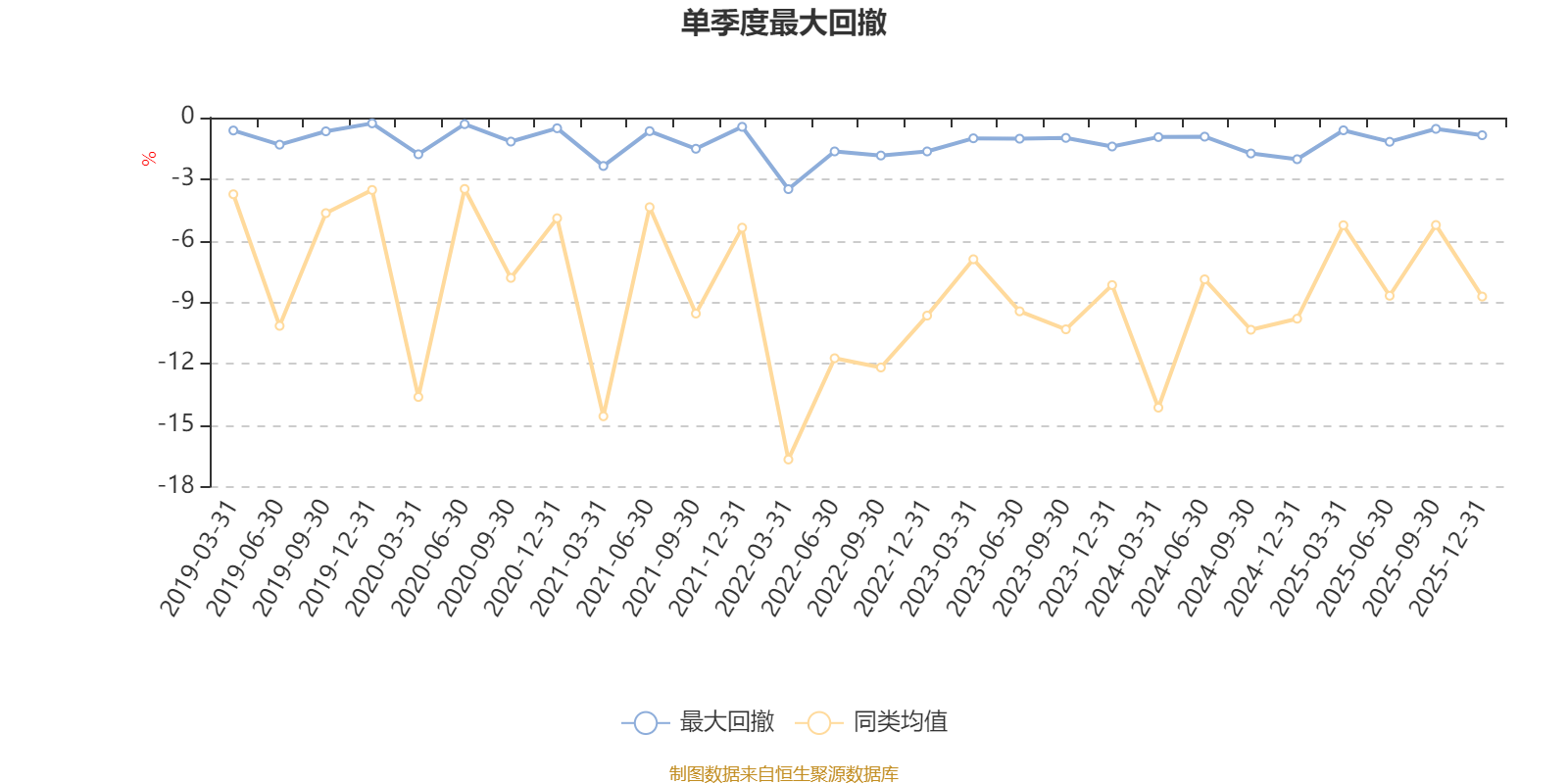 截至1月21日,基金近三年最大回撤為2.03%,同類可比基金排名26/1264。單季度最大回撤出現(xiàn)在2022年一季度,為3.49%。