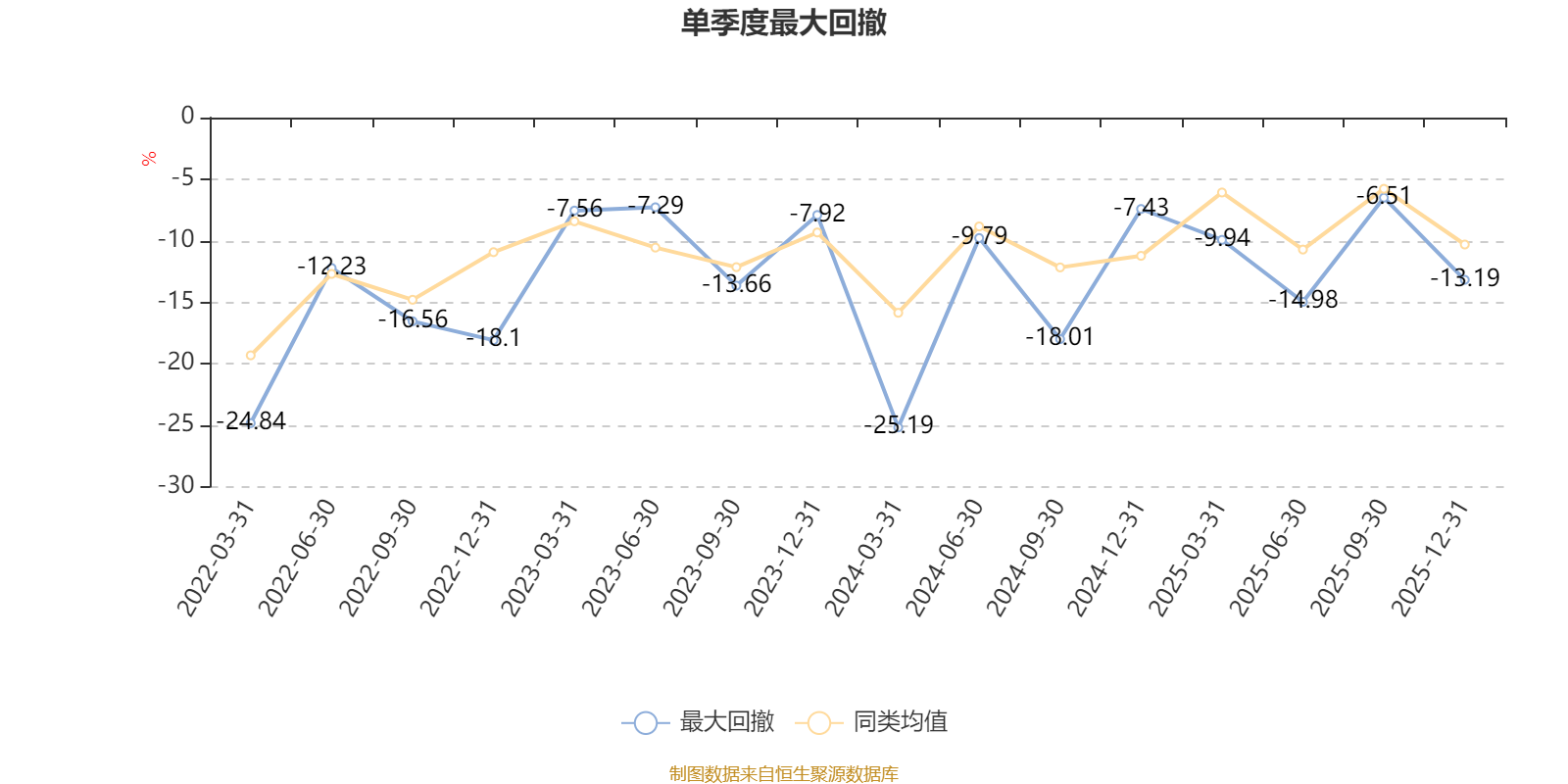 截至1月21日,基金近三年最大回撤為39.19%,同類(lèi)可比基金排名223/378。單季度最大回撤出現(xiàn)在2024年一季度,為25.19%。