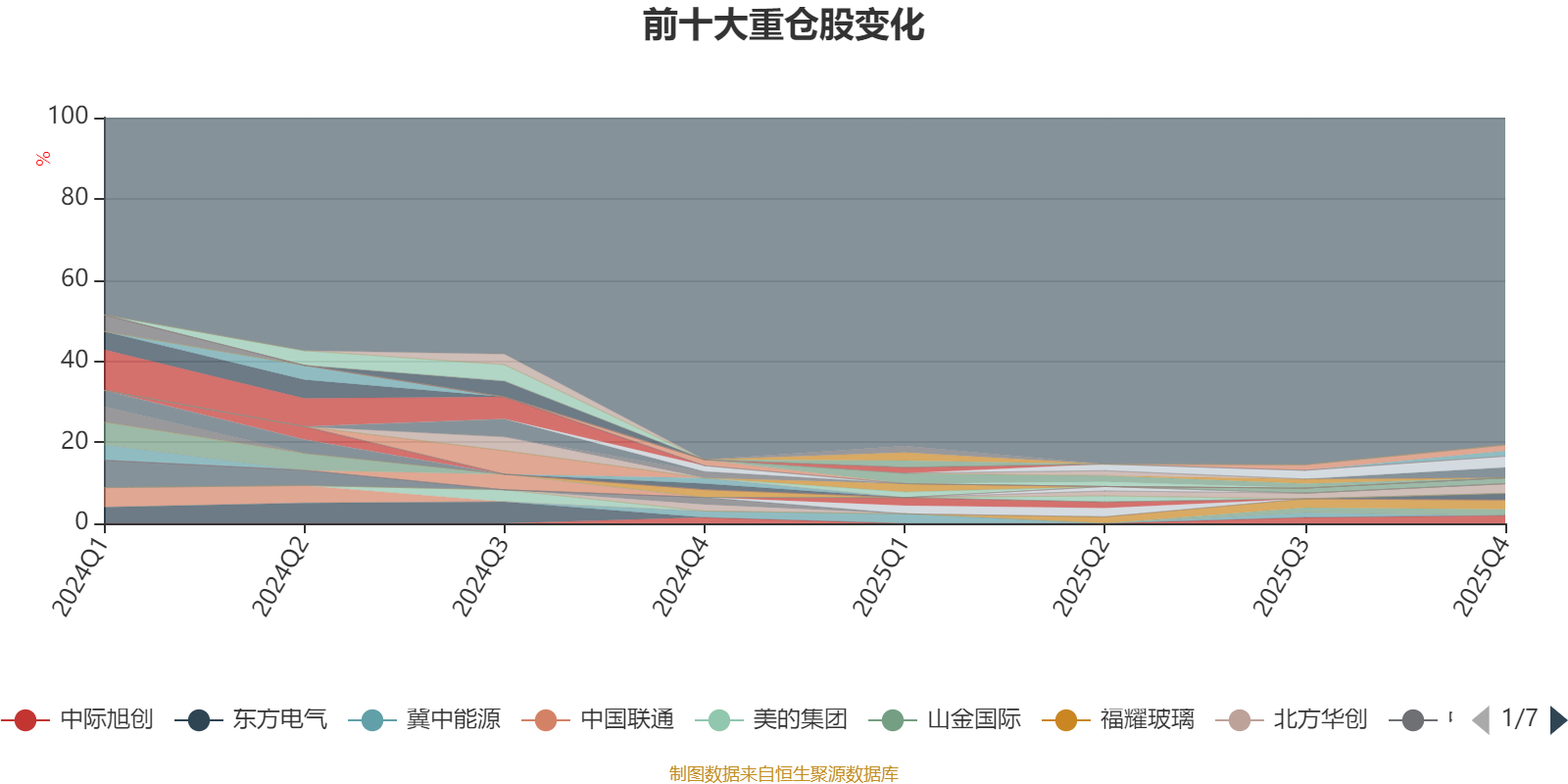 截至2025年四季度末,基金十大重倉股分別是貴州茅臺(tái)、南山鋁業(yè)、新和成、福耀玻璃、中際旭創(chuàng)、海天味業(yè)、山金國際、寒武紀(jì)、吉比特、紐威股份。