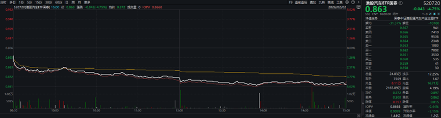 港股汽車ETF國泰大跌4.75%點評