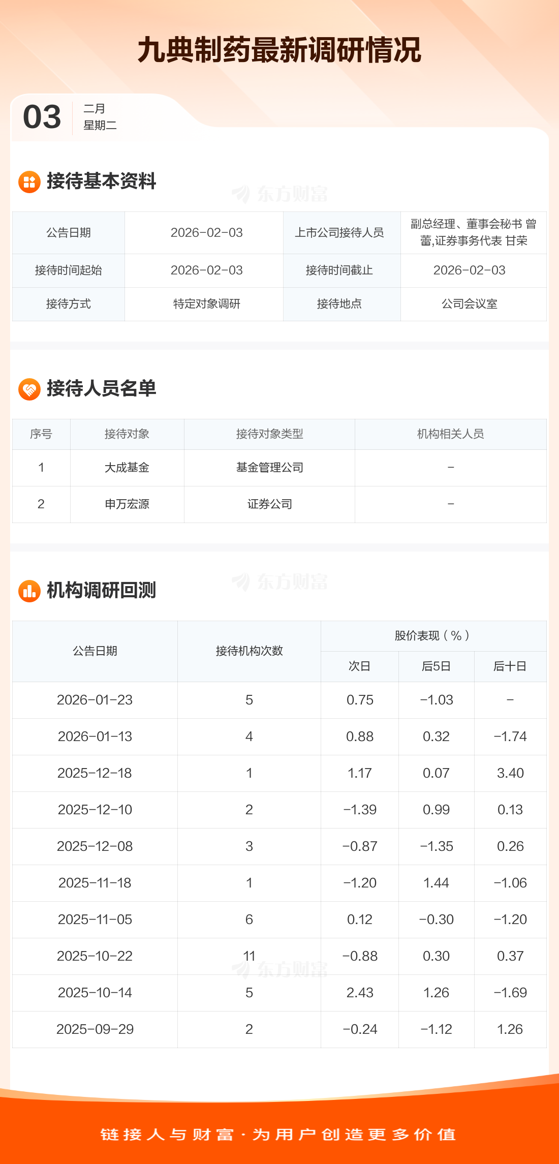 【調(diào)研快報(bào)】九典制藥接待大成基金等2家機(jī)構(gòu)調(diào)研