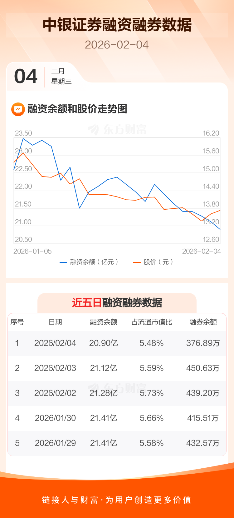 交易所最新數(shù)據(jù)顯示,中銀證券于2026年2月4日獲融資買入5294.63萬元,融資償還7469.99萬元,當(dāng)日融資凈償還2175.36萬元。目前,該股融資余額20.90億,占流通市值比例為5.48%。