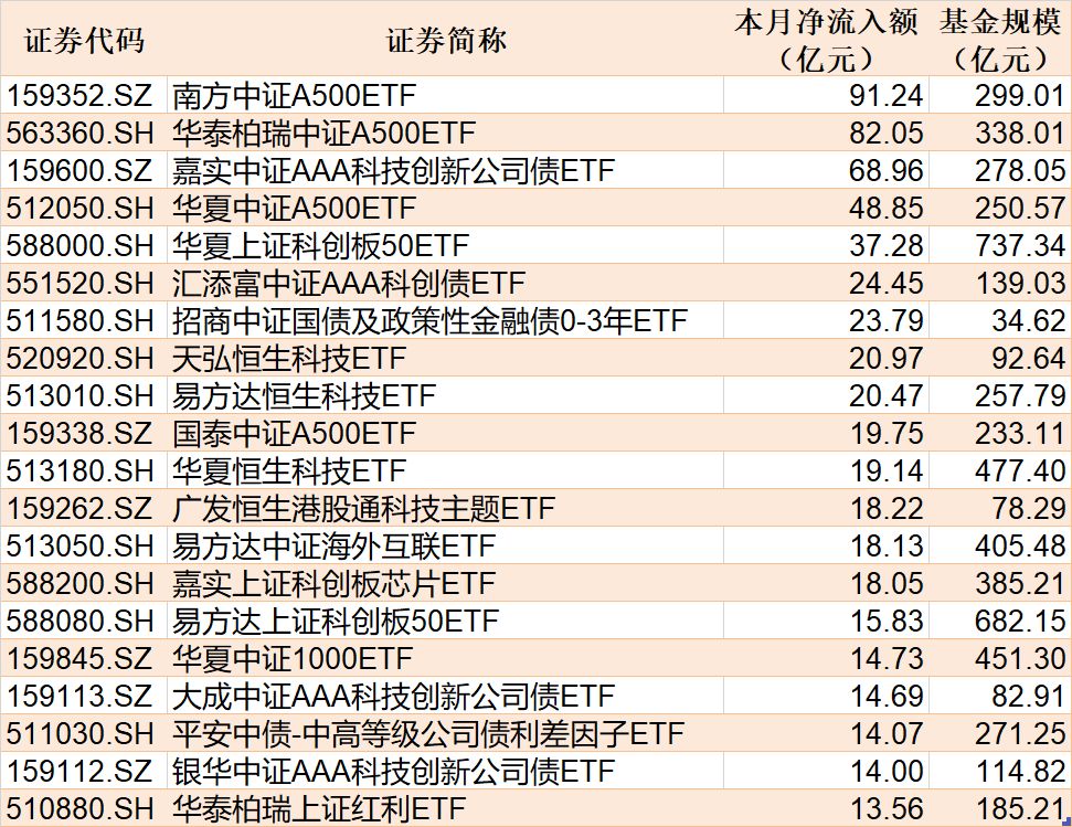 (原標題:ETF規(guī)模速報 | 恒生科技指數(shù)ETF凈流入超10億元,短融ETF凈流出超12億元)
