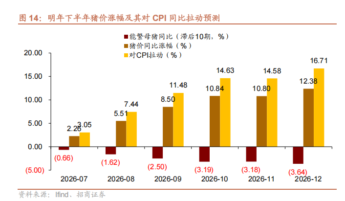 價格是報告的核心關(guān)注點。招商團隊預(yù)測CPI同比中樞上漲至0.5%,PPI在三季度轉(zhuǎn)正后年底達(dá)到0.5%。報告指出:"豬周期雖遲但到",2025年產(chǎn)能低位將對應(yīng)2026年供給收縮,下半年豬價上漲最大可拉動單月CPI約0.20個百分點。同時,原油價格中樞堅挺將提供額外支撐。