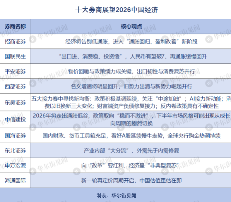 2026年作為“十五五”規(guī)劃的開局之年,將是中國經(jīng)濟告別低通脹陰霾、確立“新均衡”的轉(zhuǎn)折之年,華爾街見聞在此整理了國內(nèi)十大券商對2026年中國經(jīng)濟的展望報告。