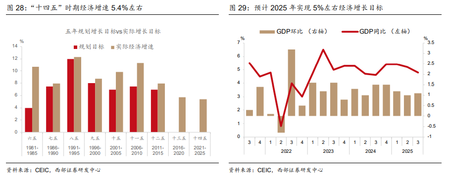 財政貨幣政策方面,報告預(yù)計,財政端,將呈現(xiàn)“小步慢走”的擴張?zhí)卣鳎噍^“加力”更側(cè)重“提效”。貨幣端,強調(diào)把握“金融強國”和“跨周期調(diào)節(jié)”兩個關(guān)鍵詞,意味著政策將更加"以我為主",降準(zhǔn)降息頻率可能低于市場預(yù)期。